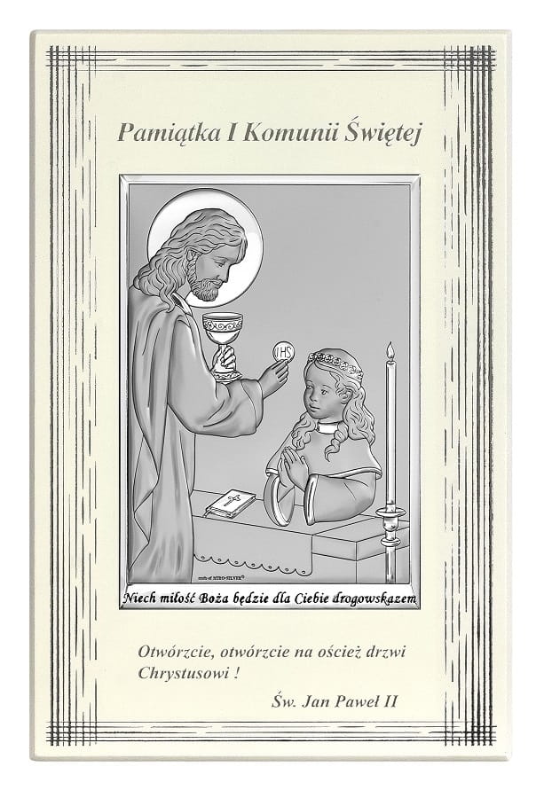 Pamiątka I Komunii Świętej dla dziewczynki 6596F/2XA z tabliczką