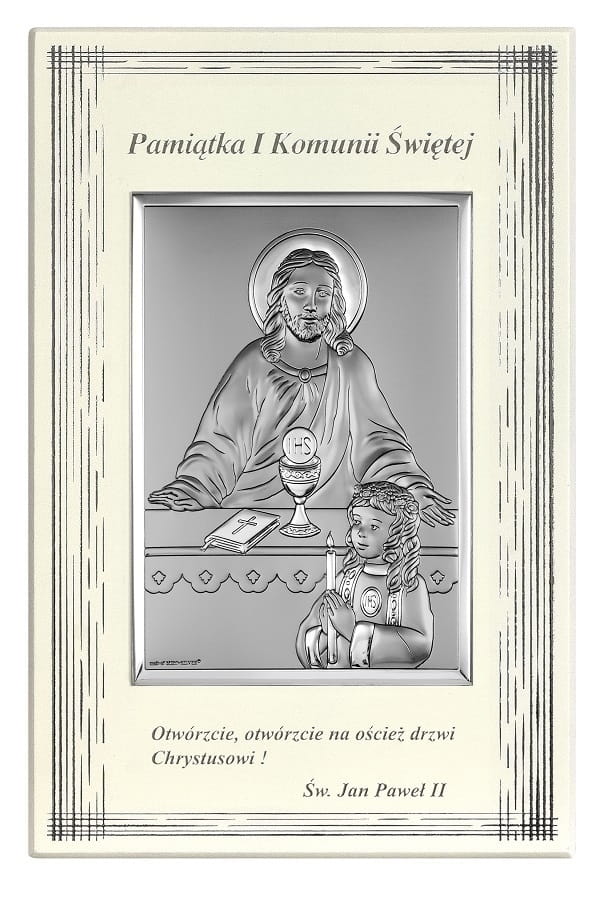 Pamiątka I Komunii Świętej dla dziewczynki 6597F/2XA z tabliczką