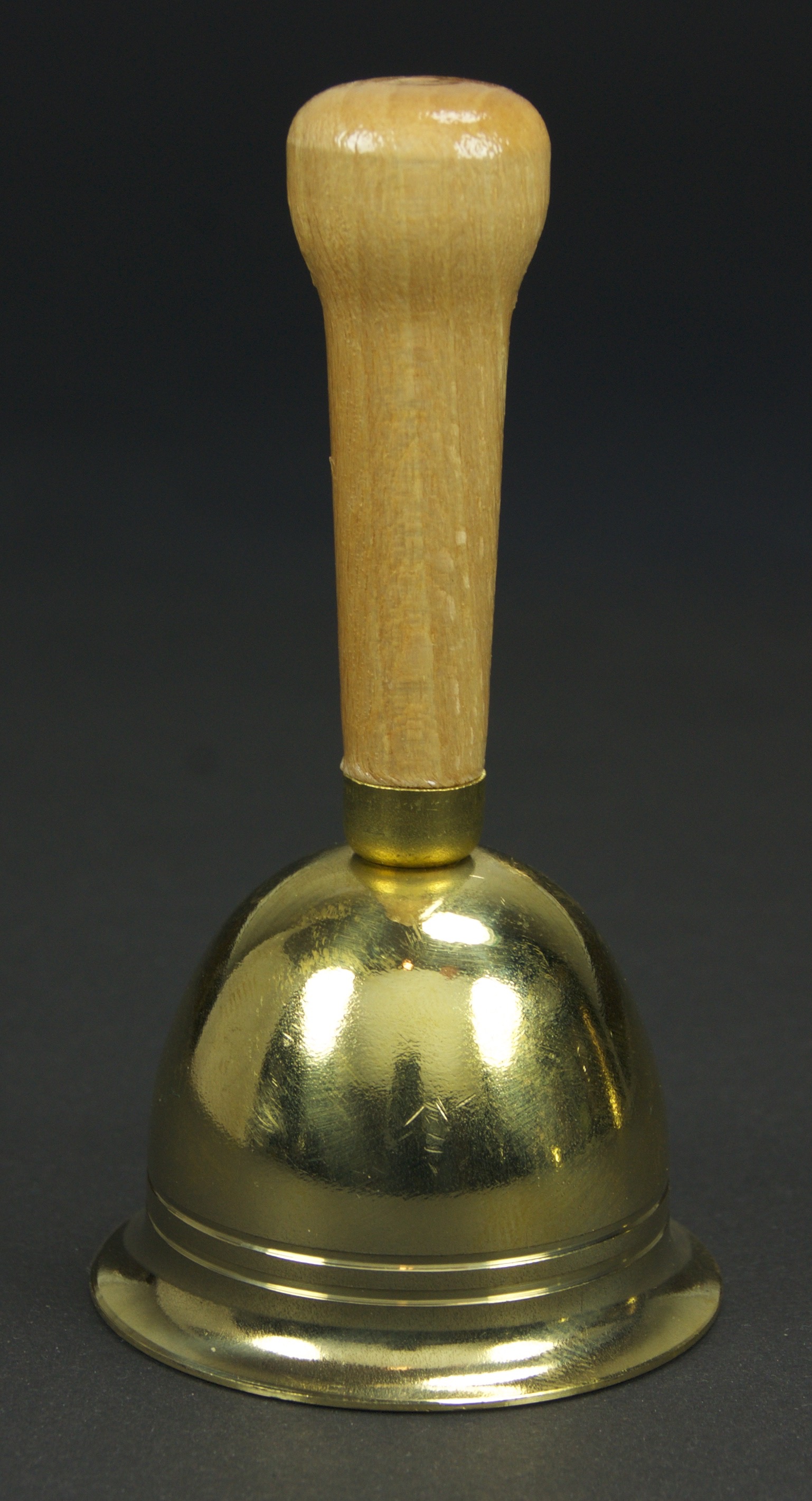 Dzwonek na Boże ciało z drewnianą rączką przeznaczony dla małego dziecka.