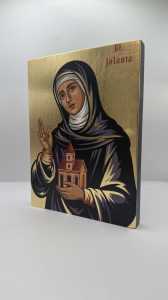 Ikona Błogosławionej Jolanty - wykonana techniką unikalnego nadruku na desce ręcznie złocona złotymi płatkami.