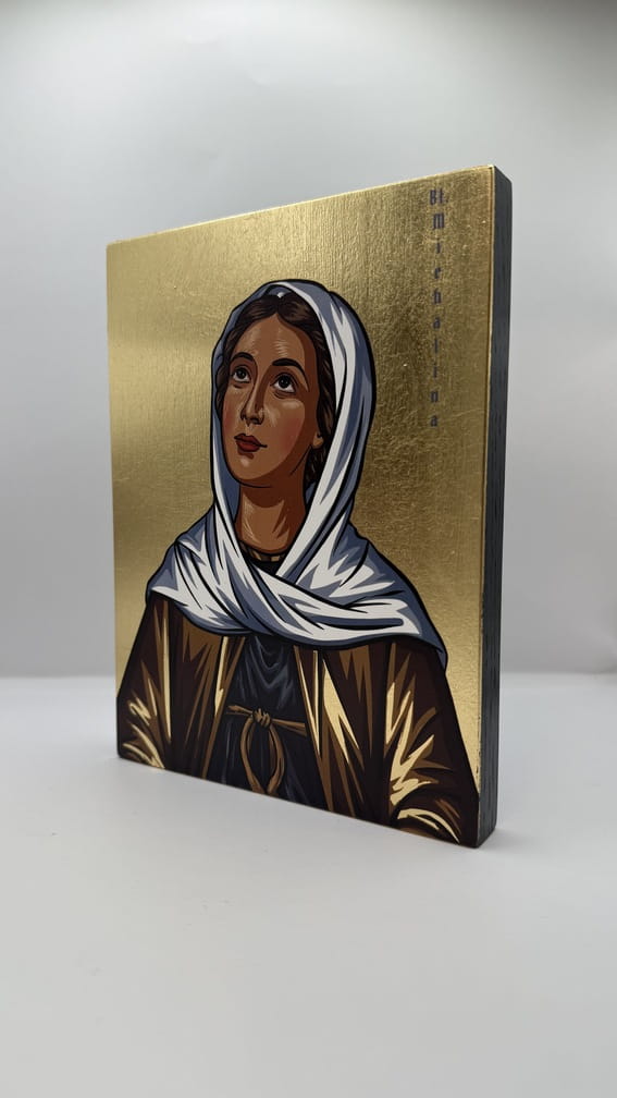 Ikona Błogosławionej Michaliny - wykonana techniką unikalnego nadruku na desce ręcznie złocona złotymi płatkami.
