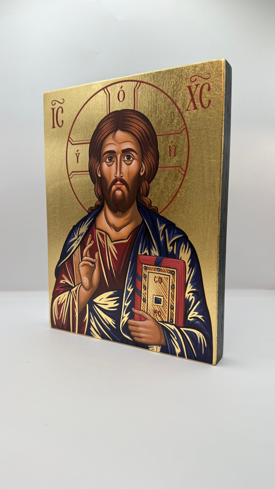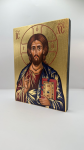 Ikona Pana Jezusa Pantokratora - wykonana techniką unikalnego nadruku na desce ręcznie złocona złotymi płatkami.