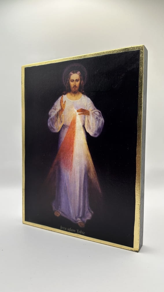 Ikona Pana Jezusa Willeńskiego (Jezu Ufam Tobie) - wykonana techniką unikalnego nadruku na desce ręcznie złocona złotymi płatkami.