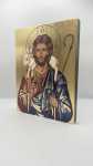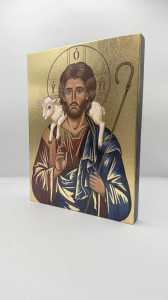 Ikona Pana Jezusa Dobrego Pasterza - wykonana techniką unikalnego nadruku na desce ręcznie złocona złotymi płatkami.