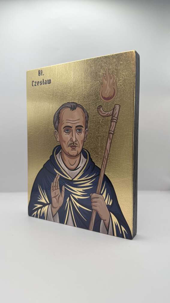 Ikona błogosławionego Czesława - wykonana techniką unikalnego nadruku na desce ręcznie złocona złotymi płatkami - wzór chroniony prawem autorskim.