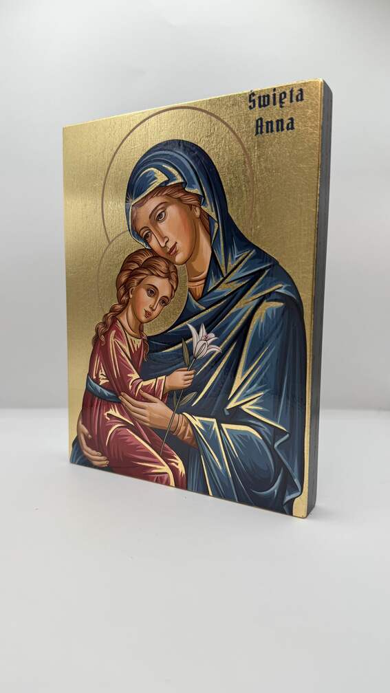 Ikona świętej Anny - wykonana techniką unikalnego nadruku na desce ręcznie złocona złotymi płatkami.