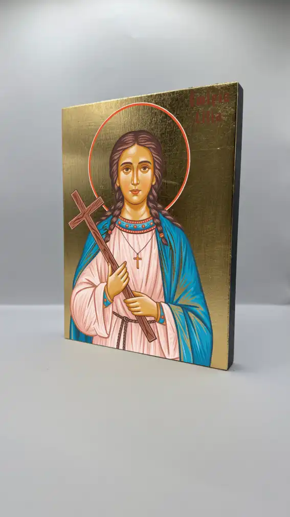 Ikona świętej Lilii - wykonana techniką unikalnego nadruku na desce ręcznie złocona złotymi płatkami.
