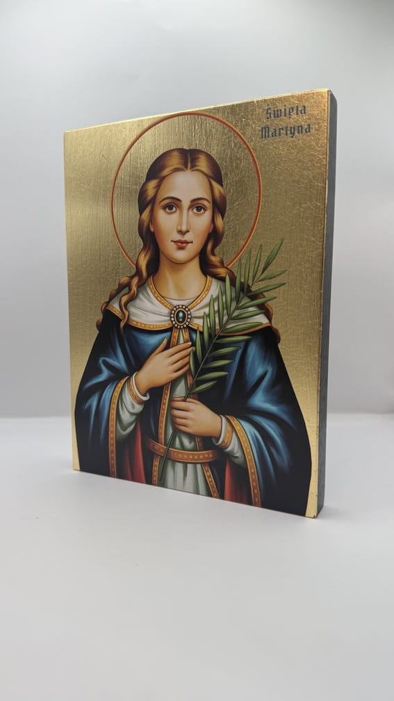 Ikona świętej Martyny - wykonana techniką unikalnego nadruku na desce ręcznie złocona złotymi płatkami.