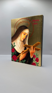 Ikona świętej Rity - wykonana techniką unikalnego nadruku na desce ręcznie złocona złotymi płatkami.