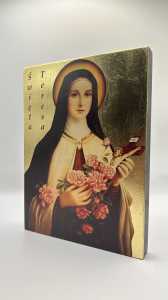 Ikona świętej Teresy - wykonana techniką unikalnego nadruku na desce ręcznie złocona złotymi płatkami.