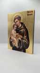 Ikona świętego Antoniego - wykonana techniką unikalnego nadruku na desce ręcznie złocona złotymi płatkami.
