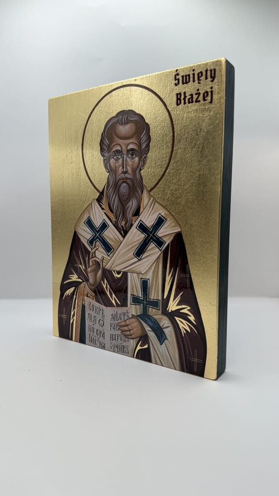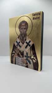 Ikona świętego Błażeja - wykonana techniką unikalnego nadruku na desce ręcznie złocona złotymi płatkami.