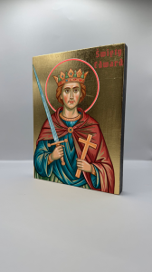 Ikona świętego Edwarda - wykonana techniką unikalnego nadruku na desce ręcznie złocona złotymi płatkami.