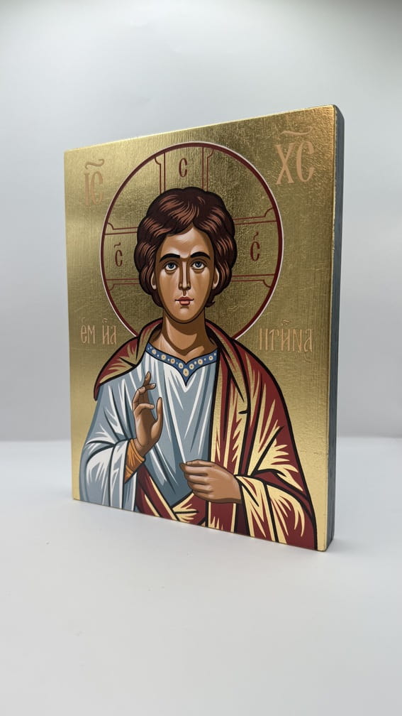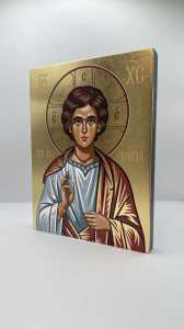 Ikona świętego Emmanuela - wykonana techniką unikalnego nadruku na desce ręcznie złocona złotymi płatkami.