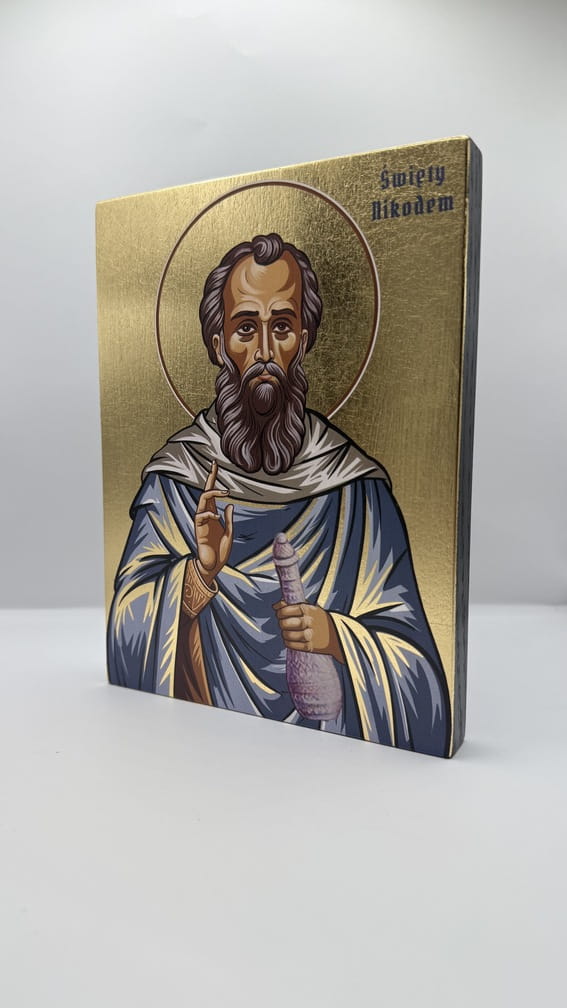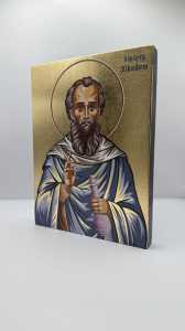 Ikona świętego Nikodema - wykonana techniką unikalnego nadruku na desce ręcznie złocona złotymi płatkami.