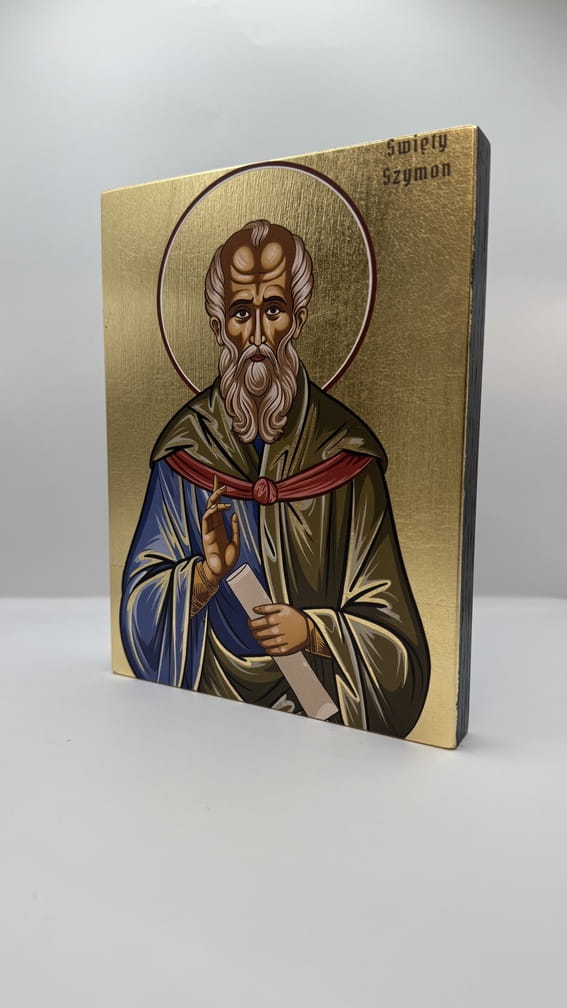 Ikona świętego Szymona - wykonana techniką unikalnego nadruku na desce ręcznie złocona złotymi płatkami.