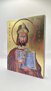Ikona świętego Wojciecha - wykonana techniką unikalnego nadruku na desce ręcznie złocona złotymi płatkami.