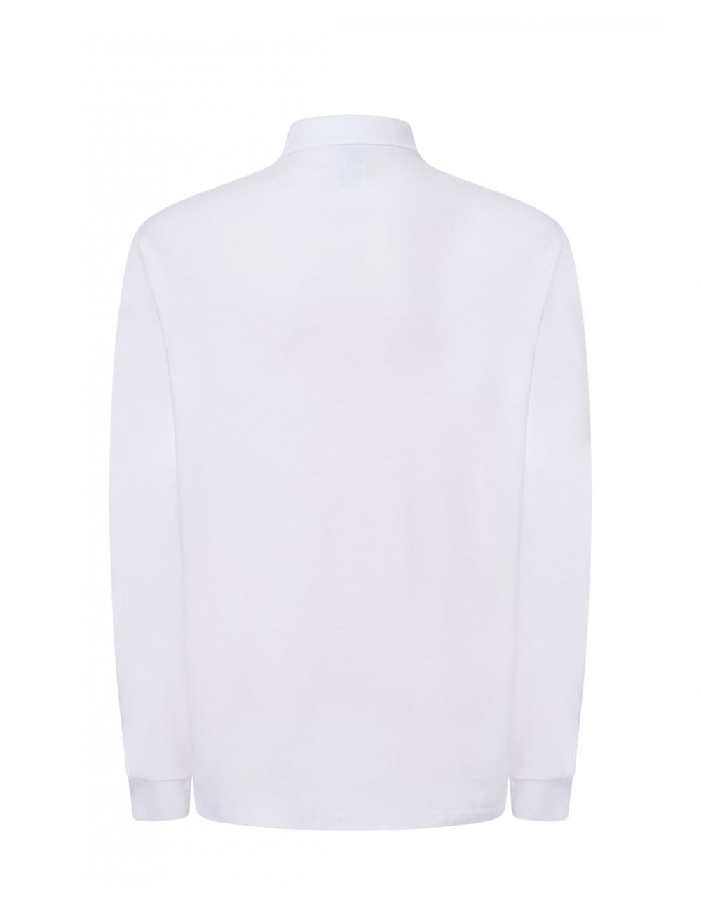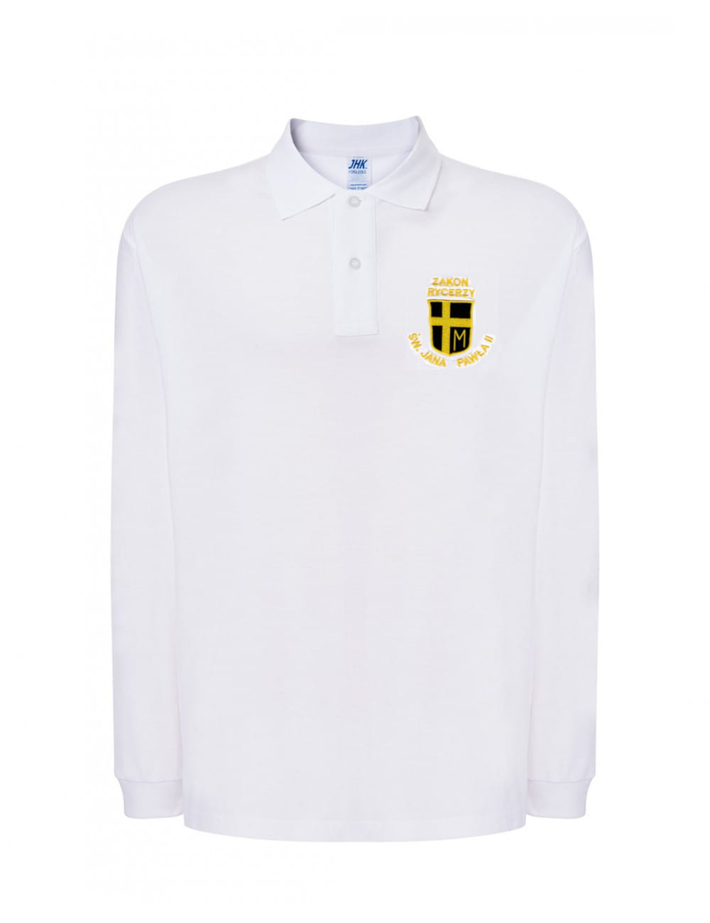 Koszulka polo długi rękaw biała z logo i napisem na piersi
