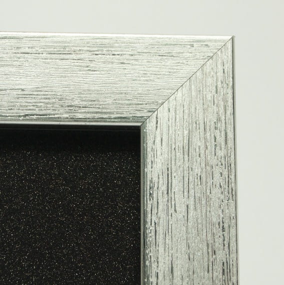Obrazek oprawiony w srebrną ramę na czarnym tle wygląda bardzo elegancko i gustownie.