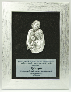 Poniżej wizerunku przyklejona blaszka z życzeniami dla osoby bierzmowanej -