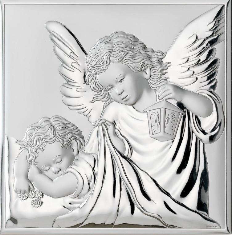 Obrazek ze srebrem Aniołek z latarenką jest bardzo dobrym wyborem jako prezent z okazji Chrztu Świętego.