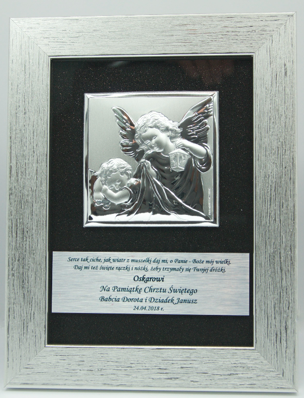 Obrazek ze srebrem Aniołek z latarenką jest bardzo dobrym wyborem jako prezent z okazji Chrztu Świętego.