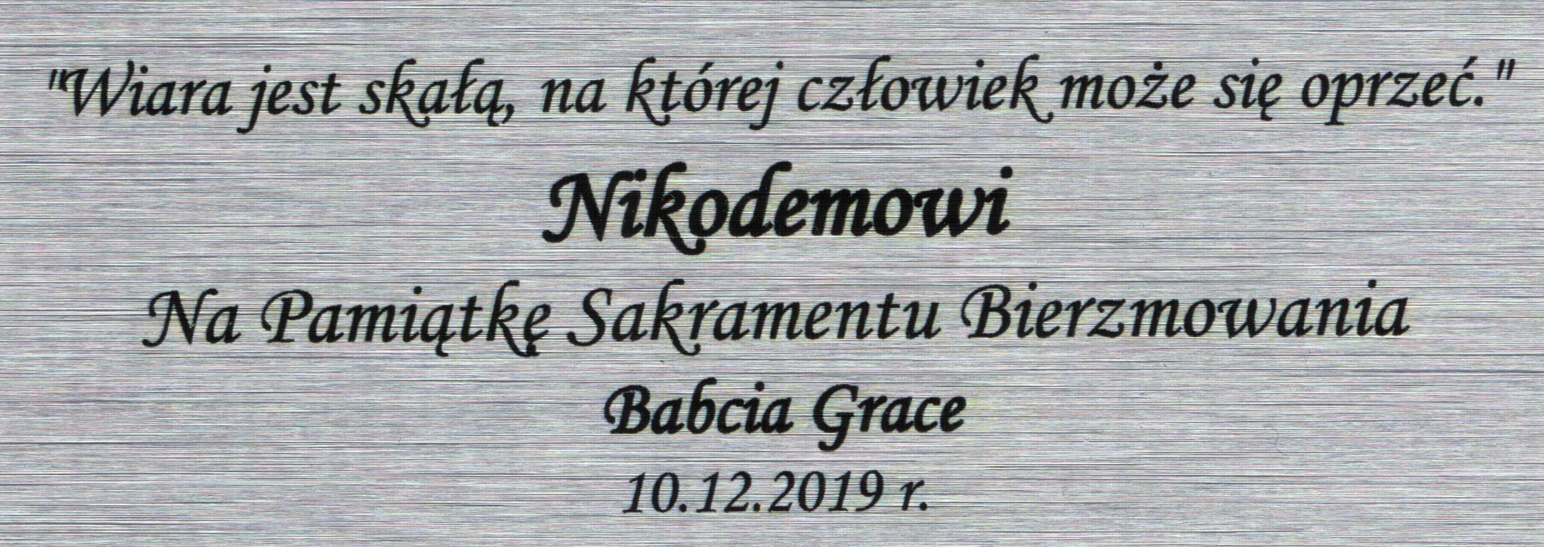Grawerowana dedykacja poniżej wizerunku nadaje całości indywidualny i niepowtarzalny charakter i jest bardzo dobrym prezentem z okazji bierzmowania.