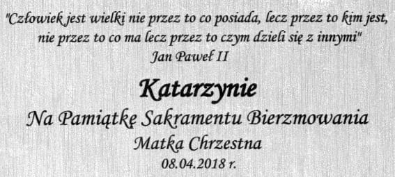 Poniżej wizerunku przyklejona blaszka z życzeniami dla osoby bierzmowanej -