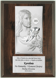 Plakietka Pan Jezus z kielichem i hostią - Pamiątka I Komunii Świętej