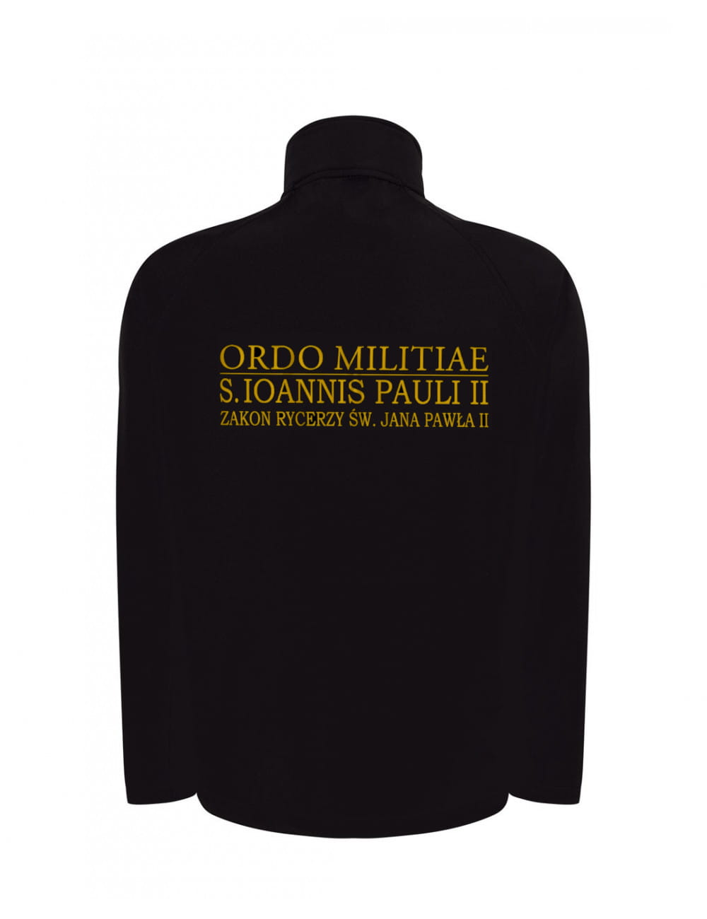 Symbol zakonu z przodu i napisem Zakon Rycerzy św. Jana Pawła II na plecach - patrz zdjęcie.