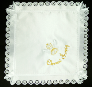 Szatka do Chrztu Świętego w kształcie chusteczki kwadratowej.