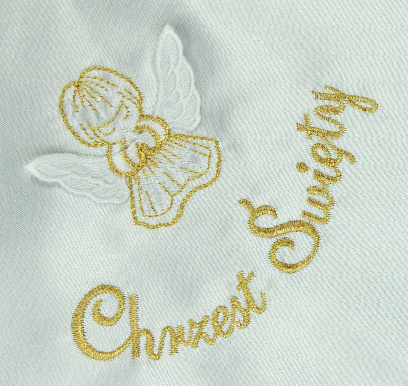 Haft można wykonać w dwóch kolorach złotym i srebrnym nićmi, którymi haftowano emblemat aniołka.