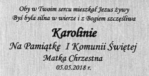 Tabliczka z życzeniami z okazji I Komunii Świętej